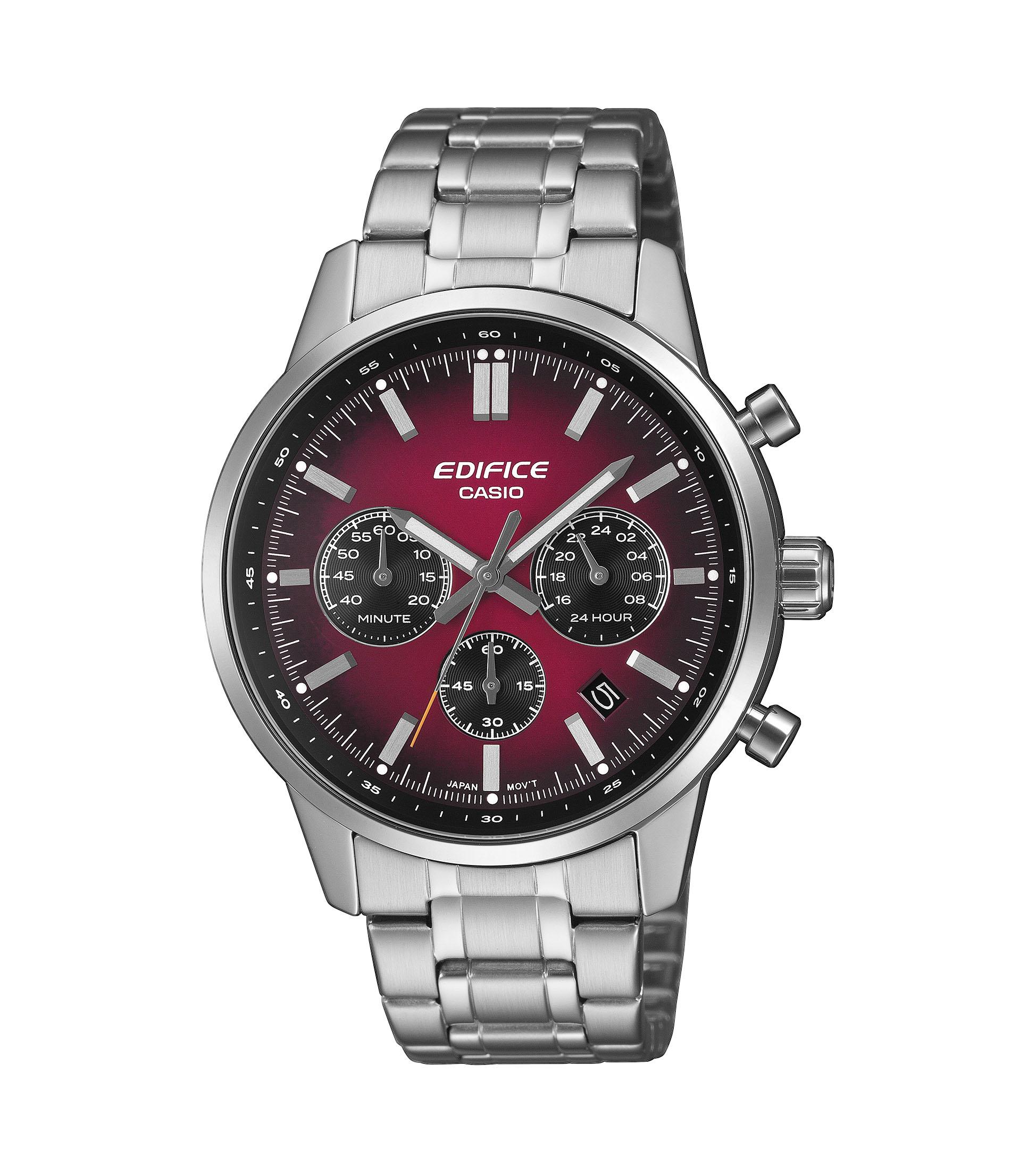 Αναλογικό: 3 δείκτες (ώρα, λεπτό, δευτερόλεπτο), 3 καντράν (24 ώρες, λεπτά χρονόμετρου, δευτερόλεπτα χρονόμετρου)