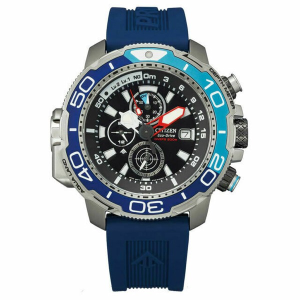 Memo max. diving depth, 24 h display, Eco-Drive, +/- 15 sec per month, Depth gauge, date, 60 days, Battery discharge indicator, Stopwatch: max.60 min,1/1 sec